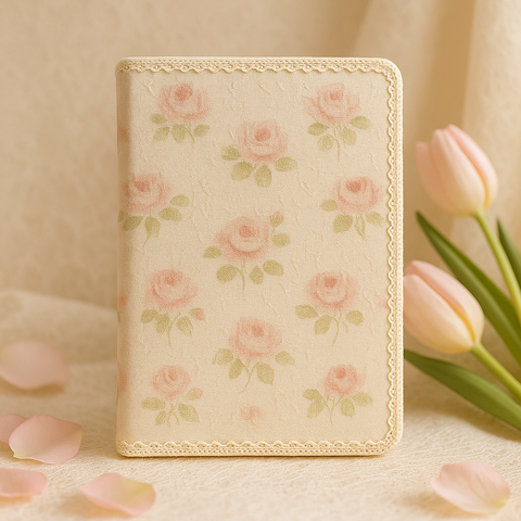 LABON Vintage tessuto rosa Notebook A5 diario floreale crema con bordo in pizzo elegante copertina morbida per le ragazze regalo e la scrittura quotidiana
