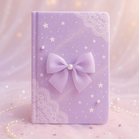 LABON lavanda taccuino stellato A5 stampa di pizzo con fiocco di perle e scintillante diario in tessuto viola per regalo romantico e scrittura