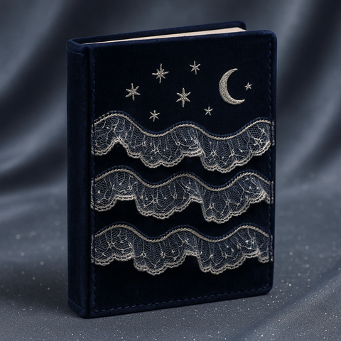 LABON mezzanotte in velluto diario luna e stelle ricamo elegante taccuino in pizzo con doppio nastro ciondolo in metallo a stella