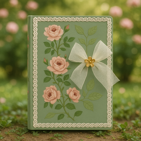 LABON Garden Style verde stampa floreale Notebook A5 tessuto diario con Tulle fiocco e fiore d'oro per regalo romantico