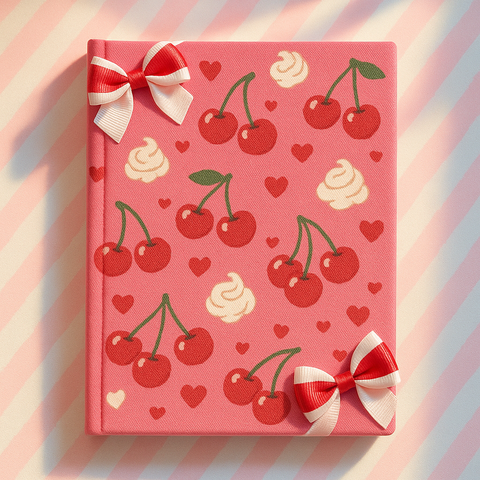 LABON rosa ciliegio taccuino A5 diario in tessuto carino con fiocchi bianchi rossi Design per ragazze regalo scolastico e scrittura Kawaii