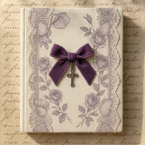 LABON velluto fiocco croce Charm e stampa floreale diario di preghiera di pizzo vittoriano A5 tessuto taccuino per la scrittura spirituale regalo gotico