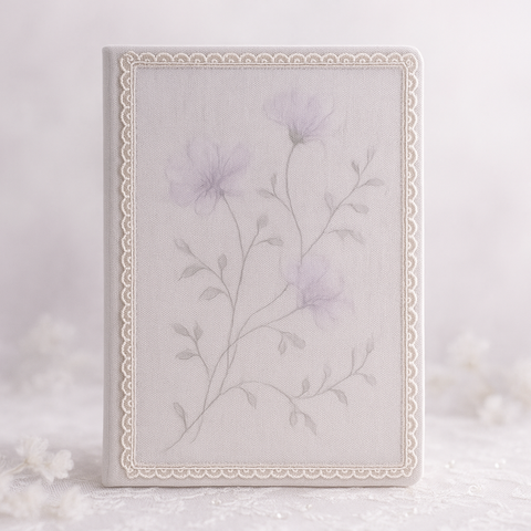 LABON sognante taccuino floreale A5 bordo in pizzo elegante fiore pastello Design tessuto grigio diario per regalo romantico